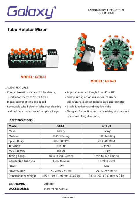 Overall, the Tube Rotator Mixer GTR-D offers an effective and reliable solution for gentle and consistent sample mixing. Its digital control system, durable construction, and user-friendly design make it a valuable addition to any laboratory. By providing accurate and uniform mixing, the mixer helps improve the quality and reliability of laboratory results while supporting efficient workflow and productivity.