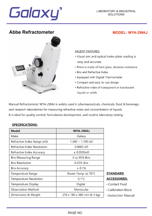 In summary, the Abbe Refractometer WYA-2WAJ is a versatile, high-precision instrument.