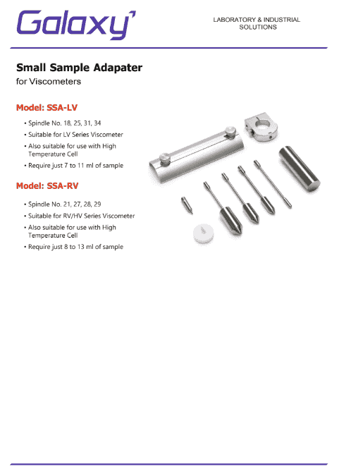 The Small Sample Adapter is a specialized accessory designed for rotational viscometers to enable accurate viscosity measurement using minimal sample volumes. In many laboratory and research applications, obtaining large quantities of a sample may not be possible or practical. The Small Sample Adapter provides an efficient solution by allowing precise viscosity measurements with significantly reduced sample volumes while maintaining accuracy and reliability.