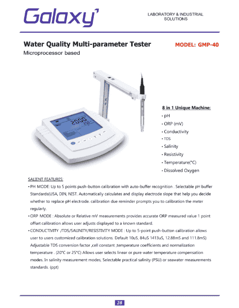 Overall, the Water Quality Multi-parameter Tester is a practical and reliable instrument for comprehensive water analysis. Its ability to measure multiple parameters with accuracy and ease makes it suitable for a wide range of applications. With its user-friendly design, portable structure, and dependable performance, it provides an effective solution for monitoring and analyzing water quality in laboratories and field environments.
